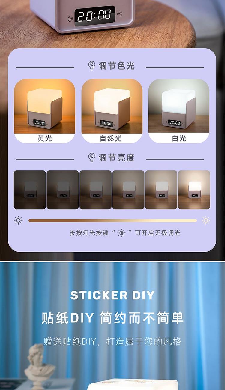 氛围夜灯 按压亮灯 三种光色 无极调光 内置电池