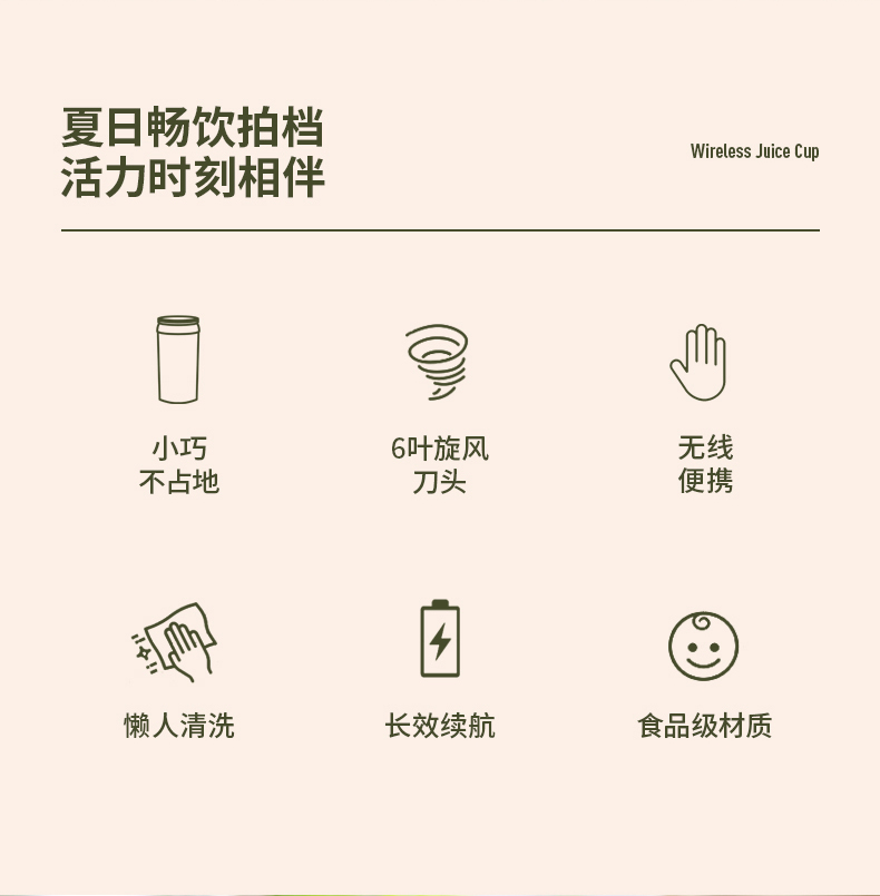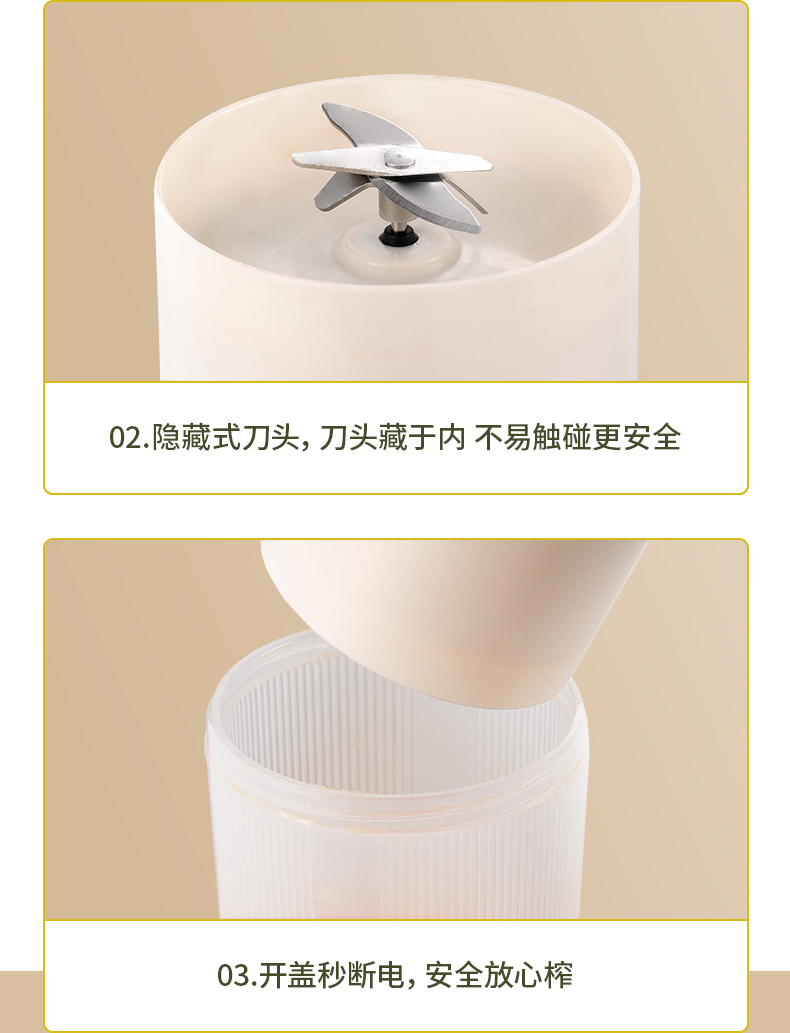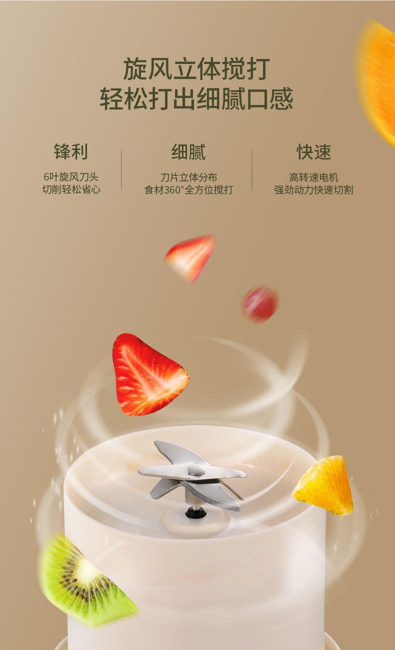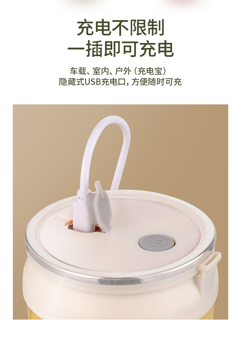 2、充电便携,六叶不锈钢刀头,搅打效果更细腻;
