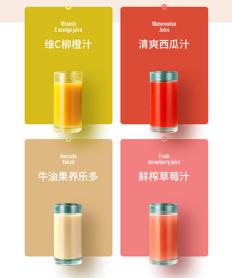 1、350ml容量,轻巧杯体,随行携带,开盖即饮,鲜榨现喝 ;