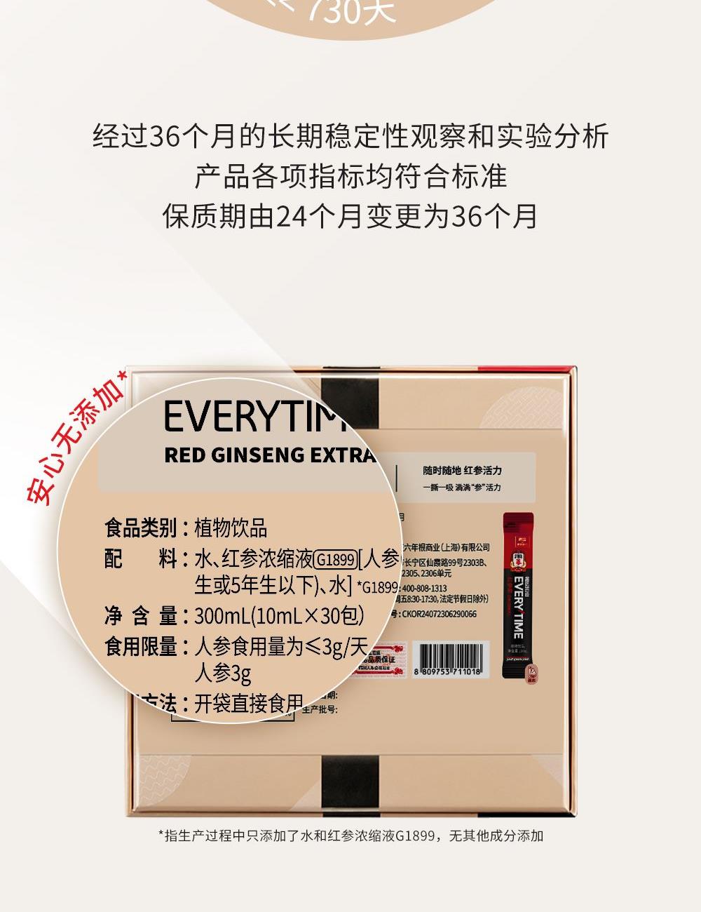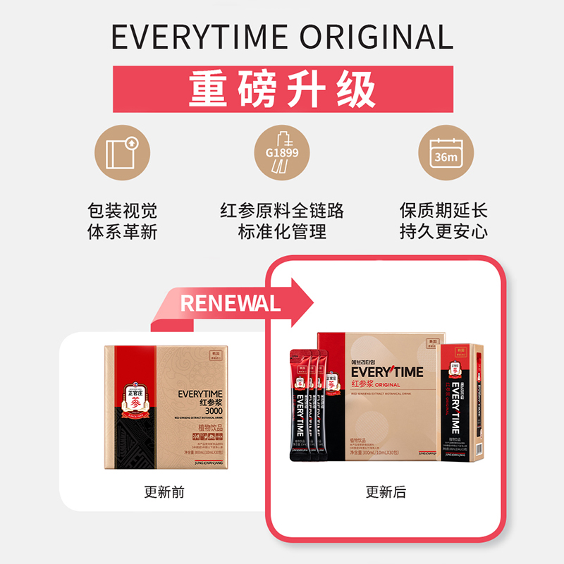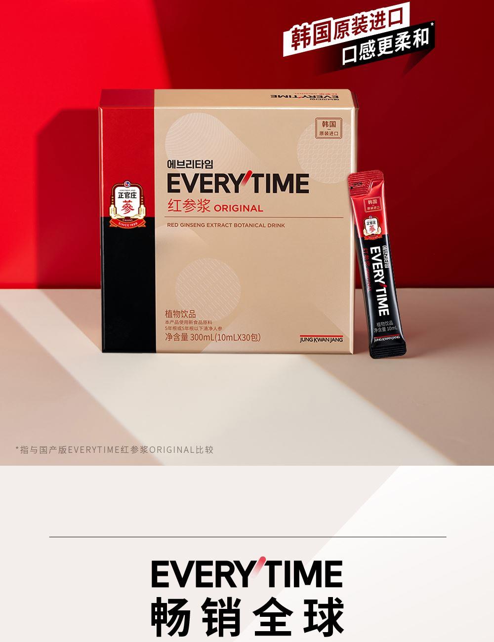 正官庄EVERYTIME红参浆10ml*30包韩国原装进口