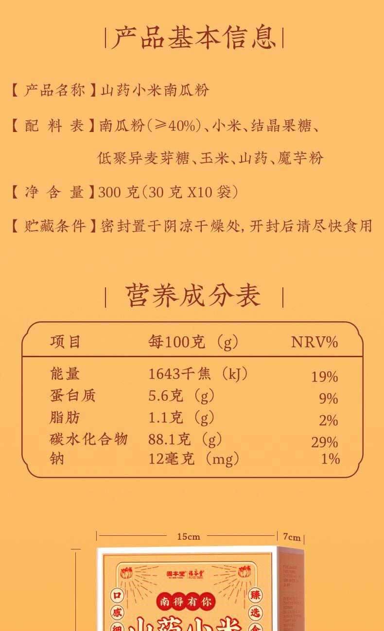 固本堂山药小米南瓜粉300g(35g*10袋GBT0F089