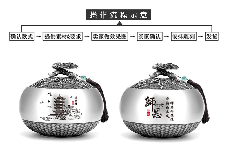 锡品源静悟锡罐防潮密封保鲜中式创意手工纯锡茶叶罐储茶罐可定制 礼品已成功加入PPT!