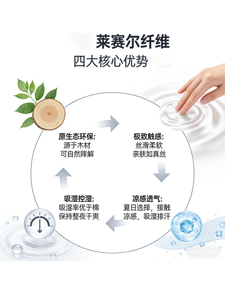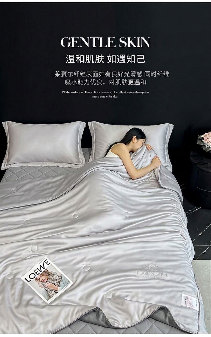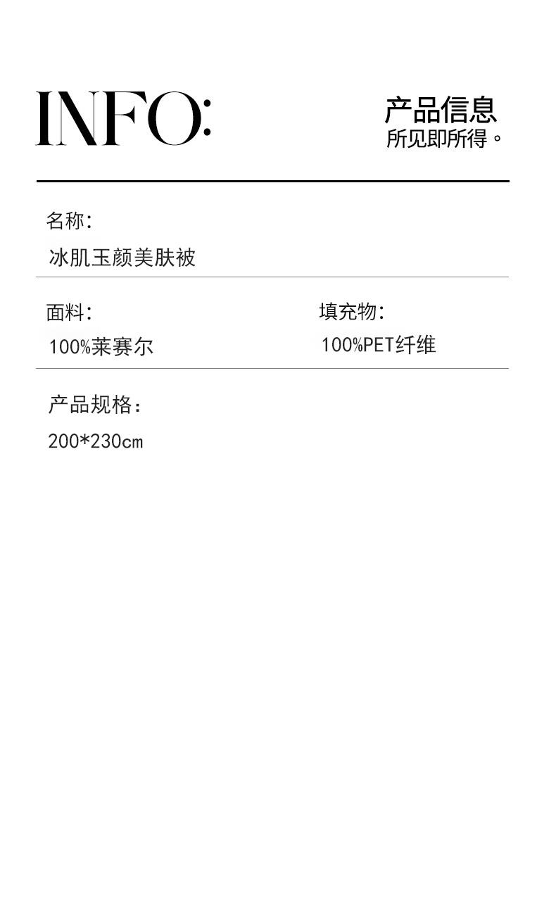 面料材质:莱赛尔 填 充:PET纤维 产品规格:200*230cm 克 重:1700g 产品包装:精美礼盒 产品特点: 面料采用60S进口莱赛尔纤维,结合了天然纤维的舒适与合成纤维的强度。拥有①柔软顺滑、透气性强②高强力、高稳定性③优异的吸湿性三大核心优点。更是一款环保与可持续性的面料。