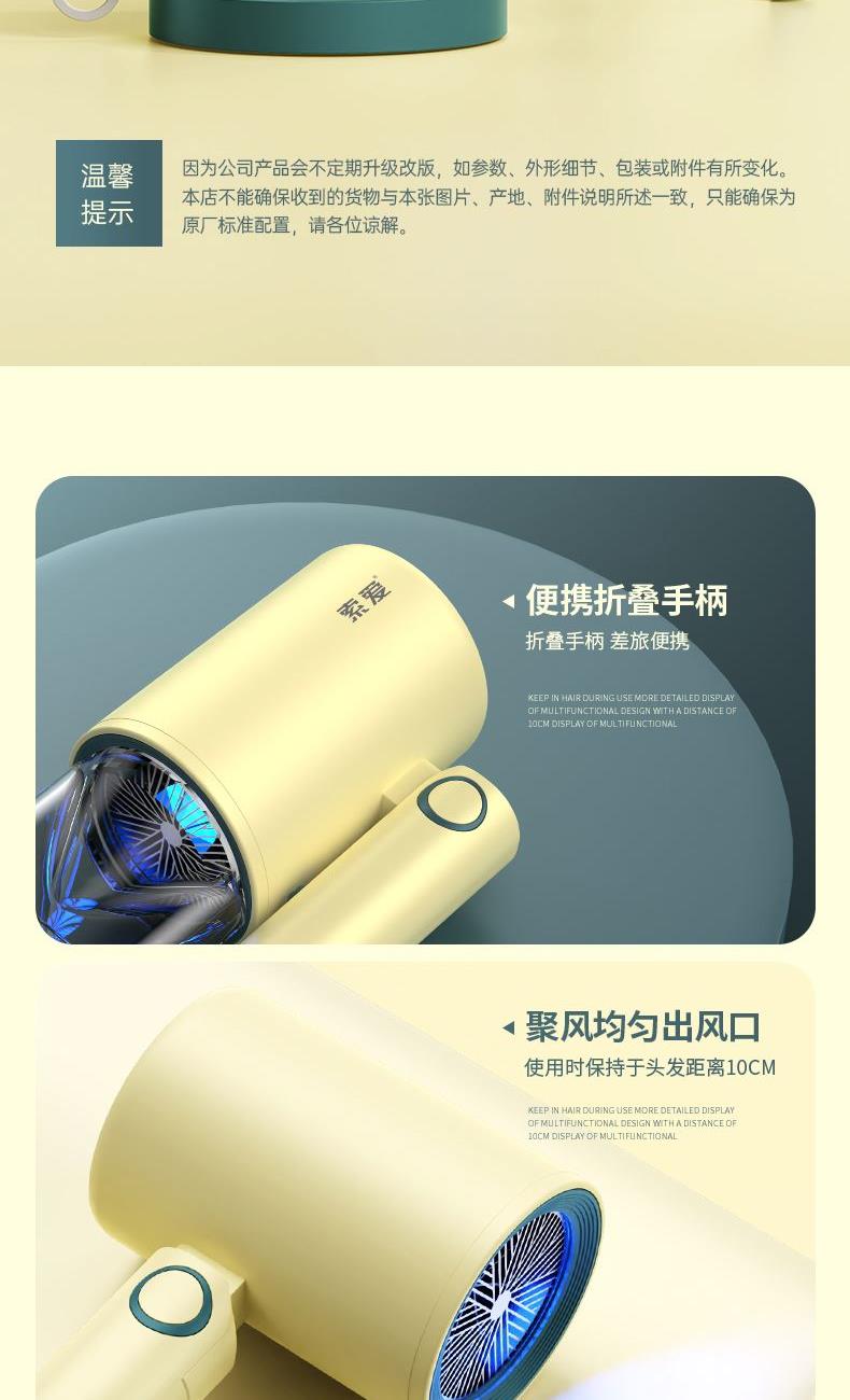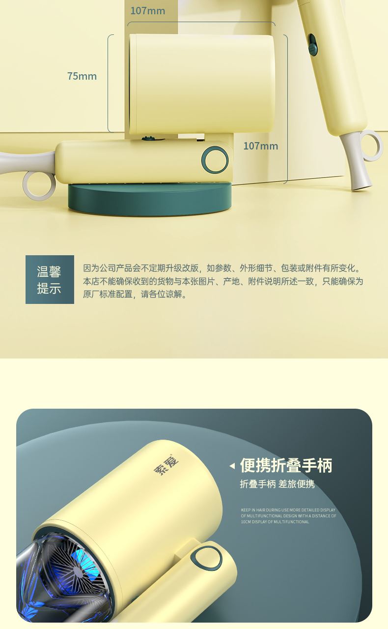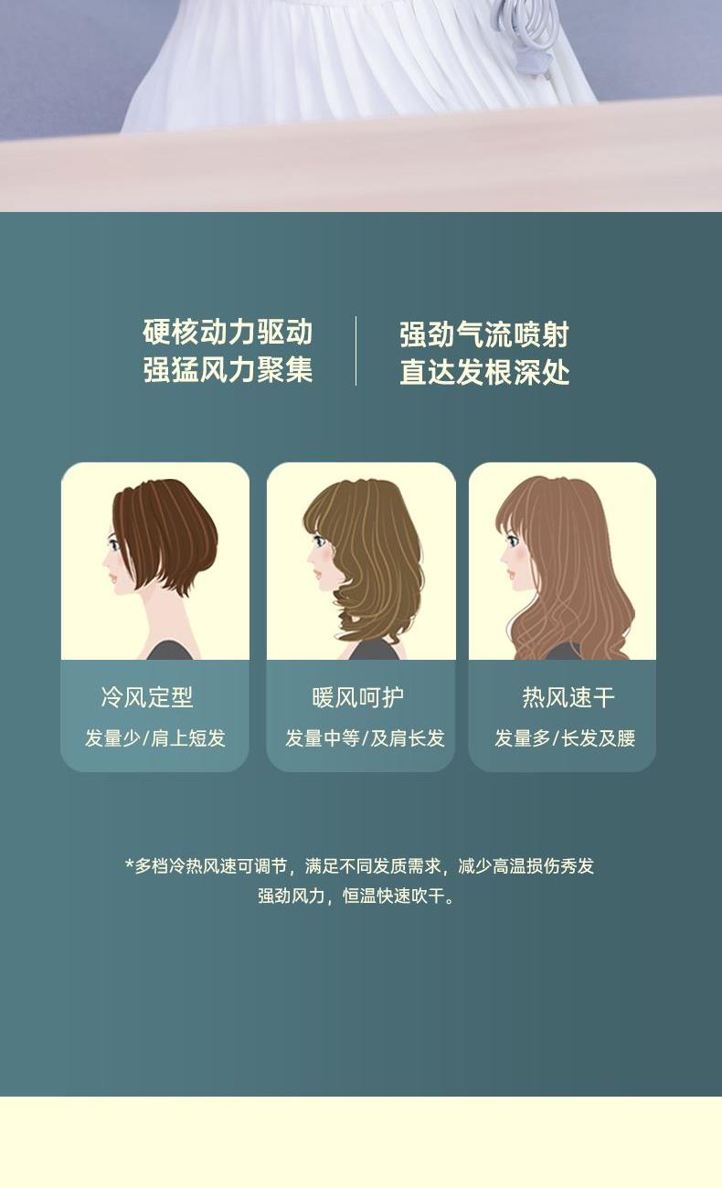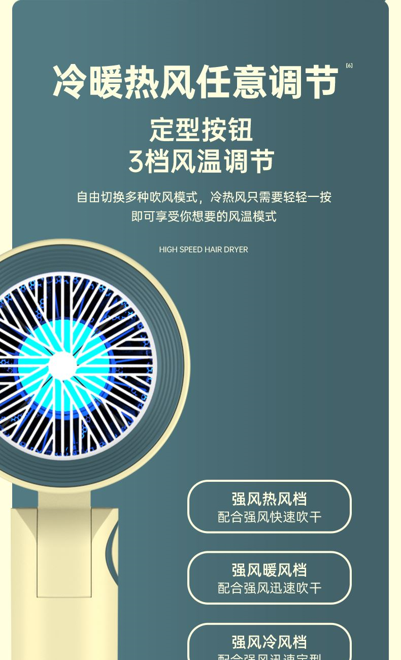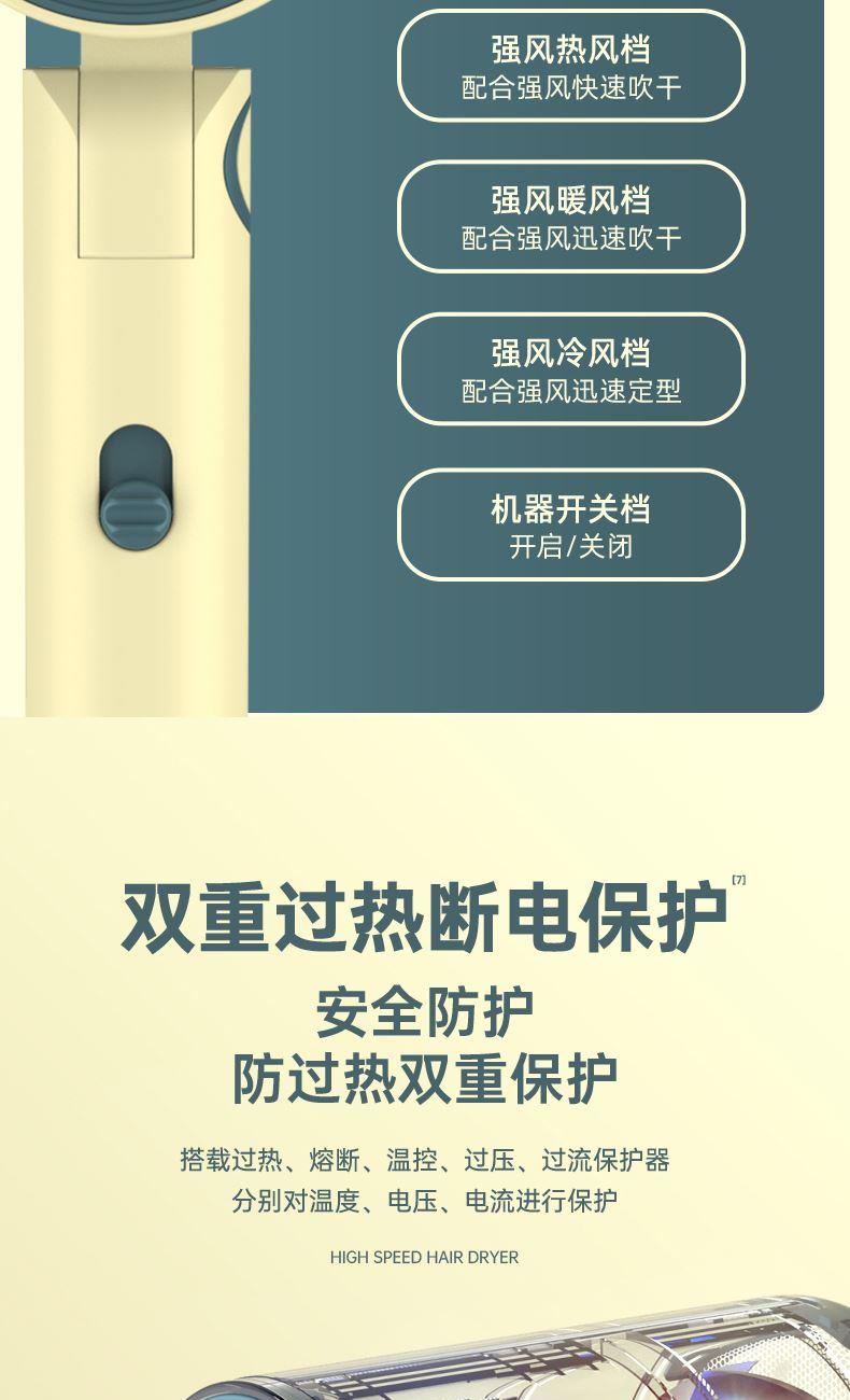 【可折叠)索爱负离子智能变频速干冷热风大功率电吹风】 附加功能:功率1600W 智能变频控温,智能过热自动断电保护 2000W负离子,速干/冷热/滋养护发更柔顺 数字调温LED数字显示,金属手感漆工艺 智能无叶搭载高速2万转升级马达,送双层防烫磁吸吹风嘴,不可折叠手柄 电线外露2米,线加粗加长,三脚扁插