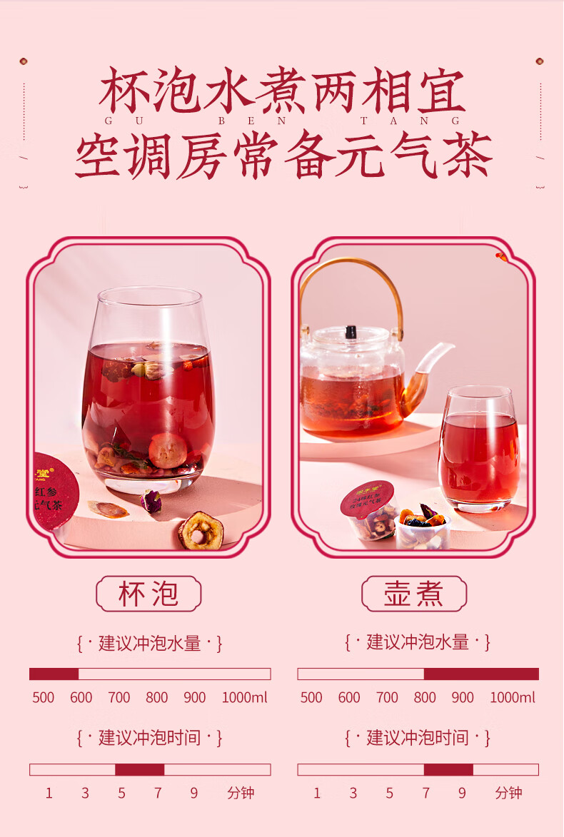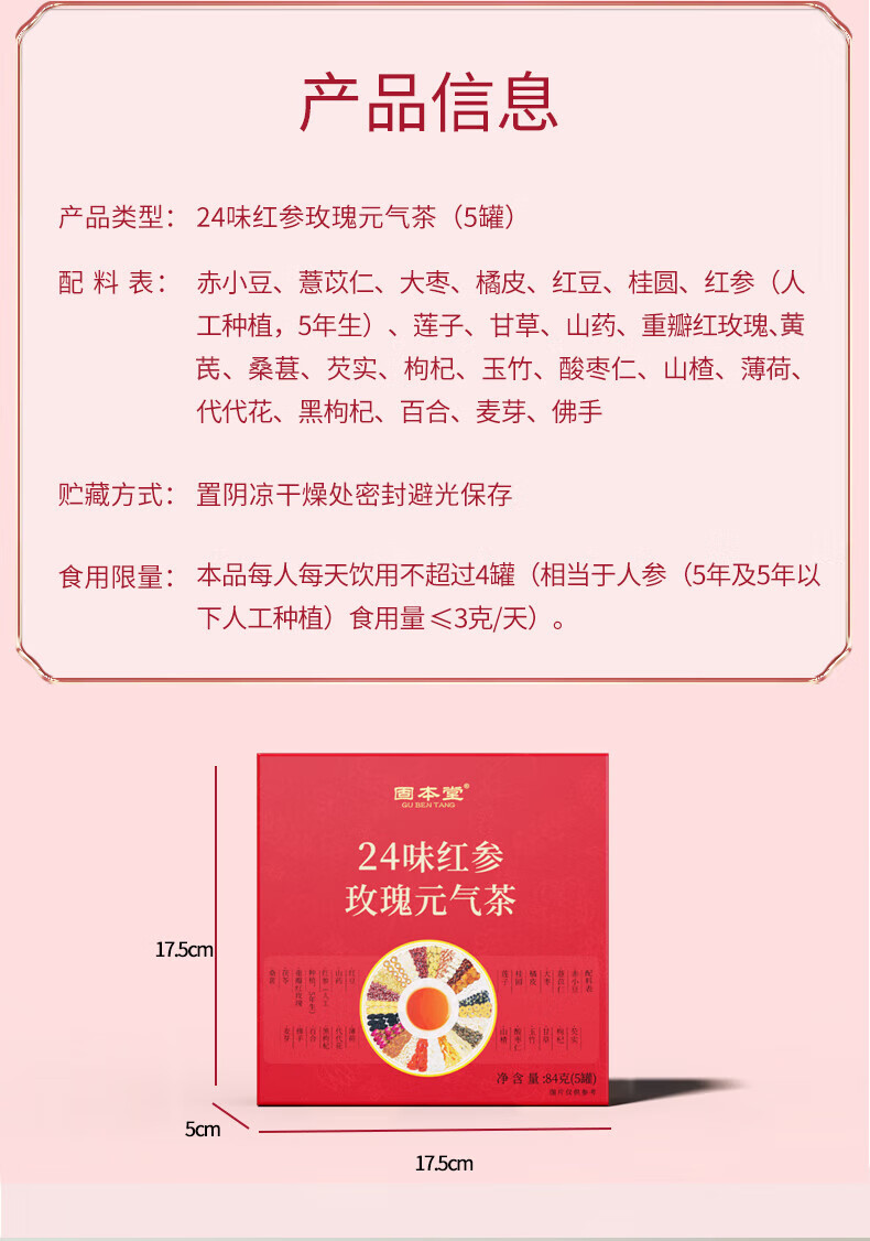 固本堂二十四味红参玫瑰元气茶84克(5罐)GBT0C039