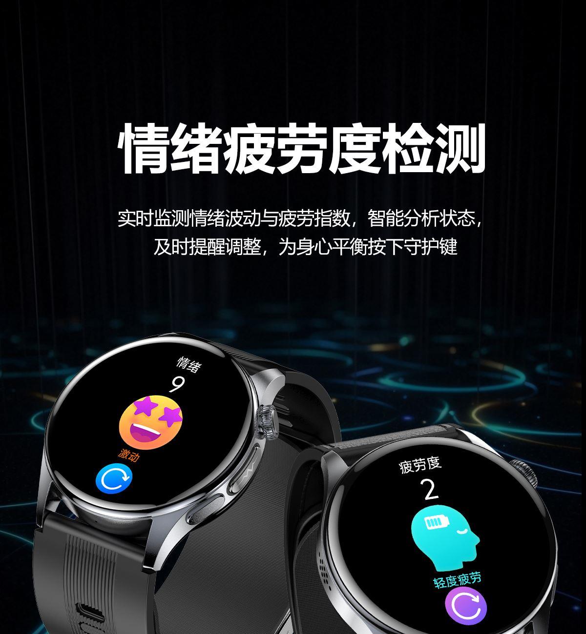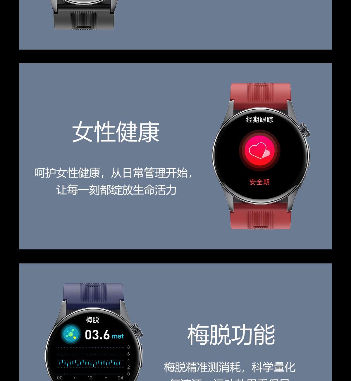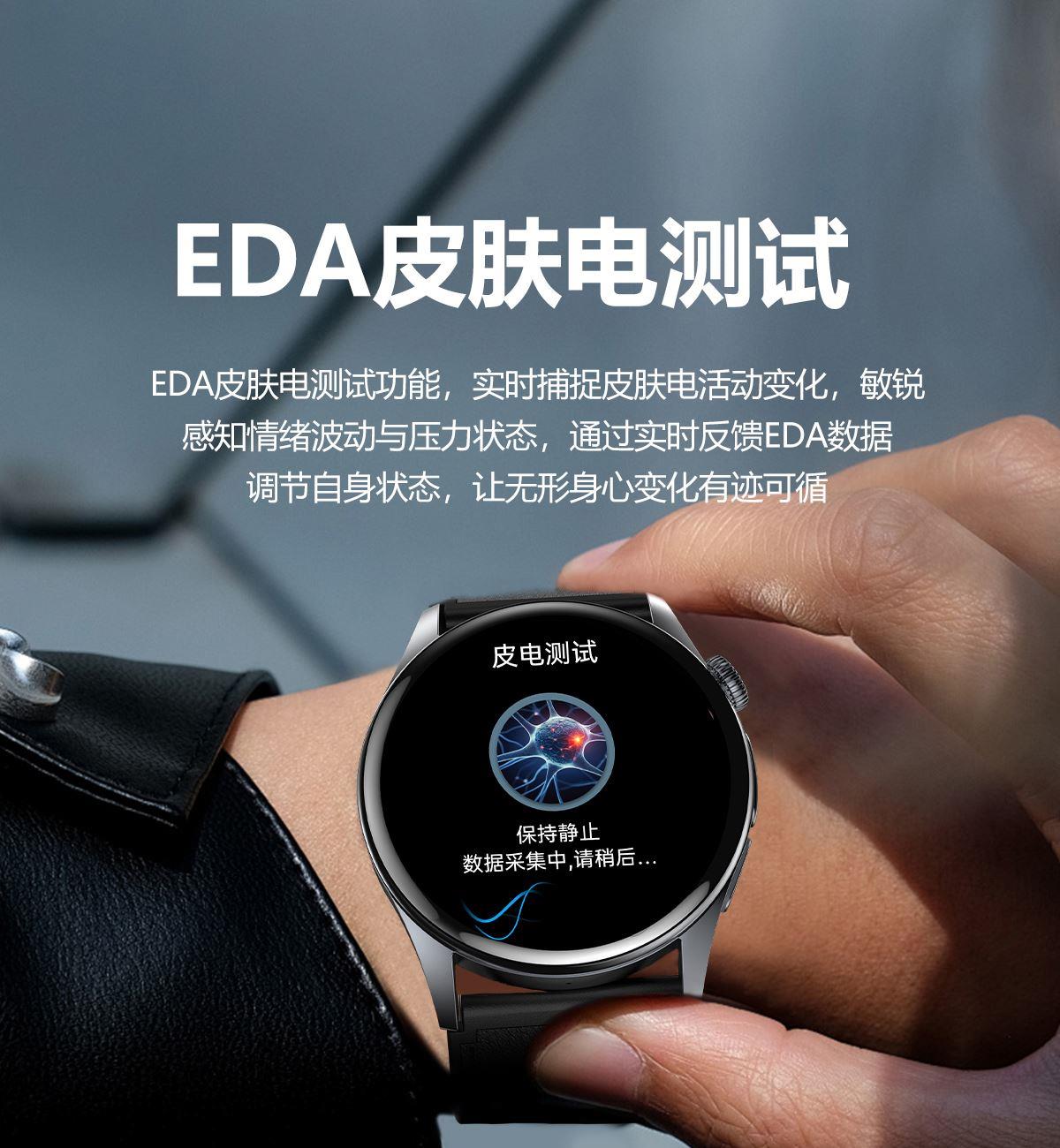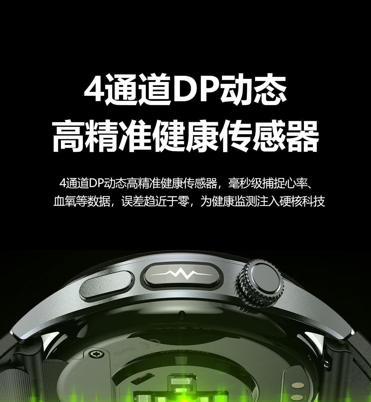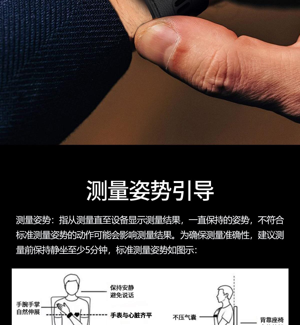 1. 采用日本村田高精密压电陶瓷气泵,血压测试稳定,一致性好,精量姿势判断、错误姿势、错误结果过滤和提醒。(密封墙体,防水性能也更好) 2. 采用Ti4950进口级芯片+纳米超导心电玻璃,采集心电图更 3. 4PD多通道动态心率血氧监测,采集心率血氧更 4. 一键微tijian功能,情绪检测,疲劳度检测 5. EDA皮电功能(测试情绪和交感神经活跃度、抑郁症风险等) 6. 科学睡眠(24小时睡眠监测) 其他:智能语音助手,蓝牙通话,支付宝离线支付,NFC门禁,SOS紧急呼叫功能,身体成分(体脂BMI)、无创xuetang评估,血液成分评估(尿酸血脂功能),梅脱功能,血氧监测,血压监测,呼吸训练,女性健康,心率监测,体温监测,手电筒,计步/卡路里/距离,多运动模式,闹钟,息屏显示功能,天气预报,游戏,音乐播放和控制。