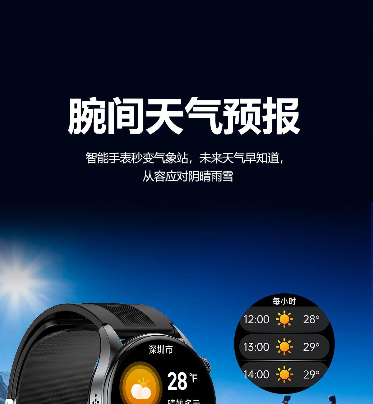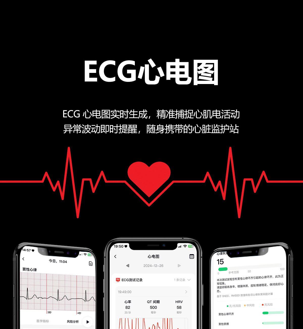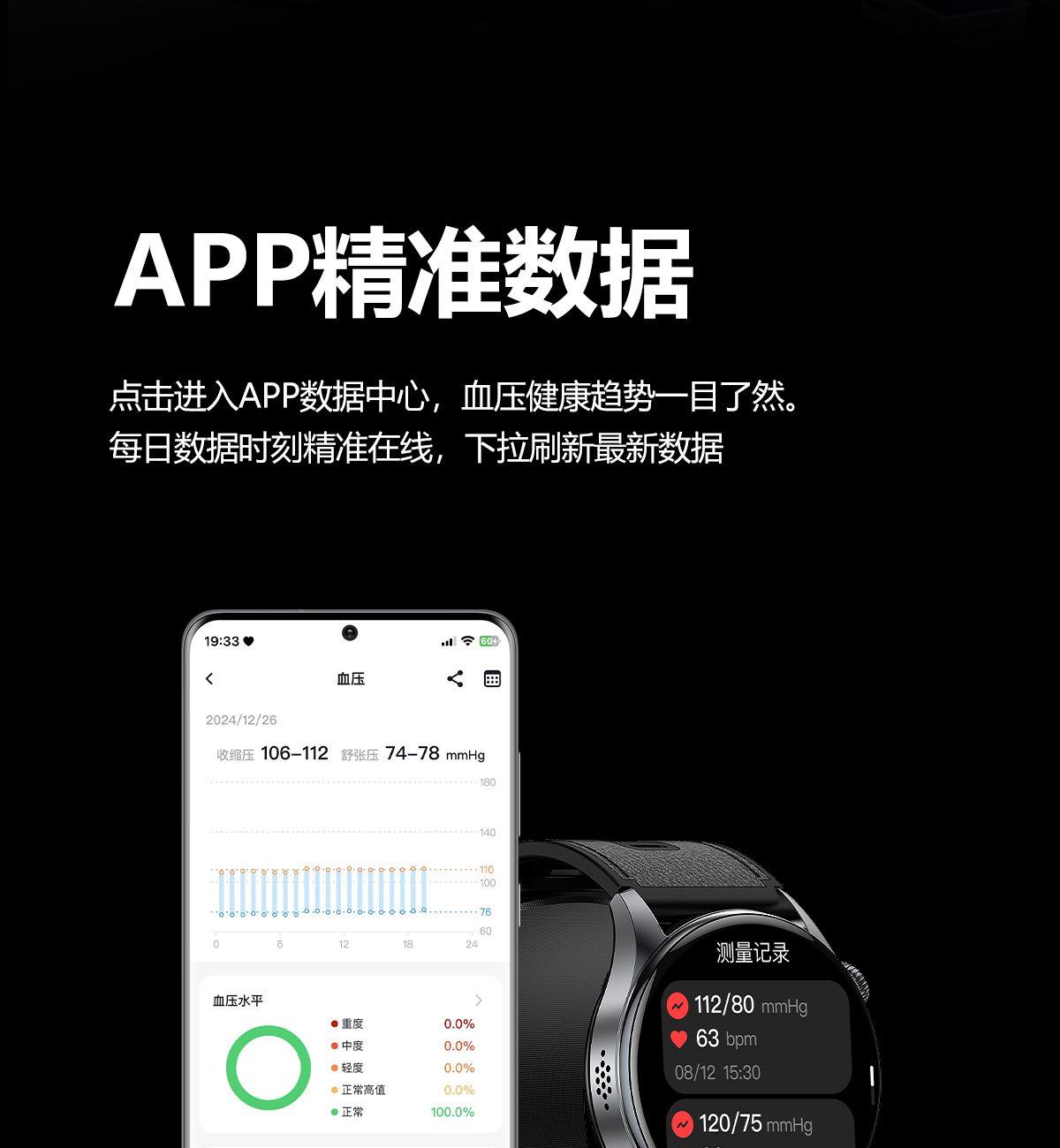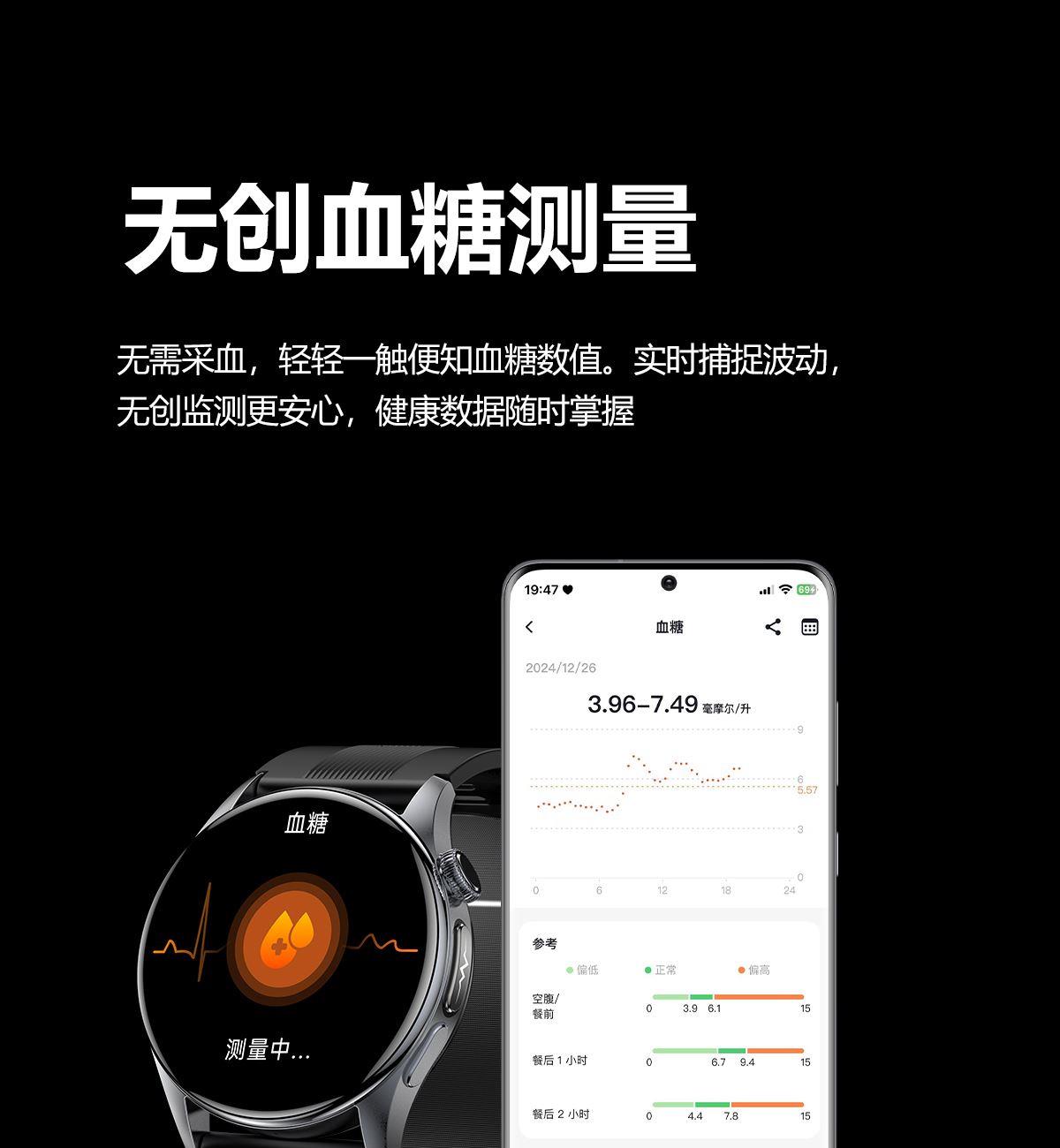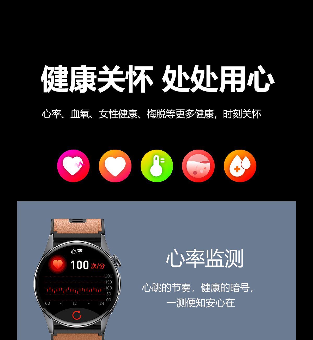 1. 采用日本村田高精密压电陶瓷气泵,血压测试稳定,一致性好,精量姿势判断、错误姿势、错误结果过滤和提醒。(密封墙体,防水性能也更好) 2. 采用Ti4950进口级芯片+纳米超导心电玻璃,采集心电图更 3. 4PD多通道动态心率血氧监测,采集心率血氧更 4. 一键微tijian功能,情绪检测,疲劳度检测 5. EDA皮电功能(测试情绪和交感神经活跃度、抑郁症风险等) 6. 科学睡眠(24小时睡眠监测) 其他:智能语音助手,蓝牙通话,支付宝离线支付,NFC门禁,SOS紧急呼叫功能,身体成分(体脂BMI)、无创xuetang评估,血液成分评估(尿酸血脂功能),梅脱功能,血氧监测,血压监测,呼吸训练,女性健康,心率监测,体温监测,手电筒,计步/卡路里/距离,多运动模式,闹钟,息屏显示功能,天气预报,游戏,音乐播放和控制。