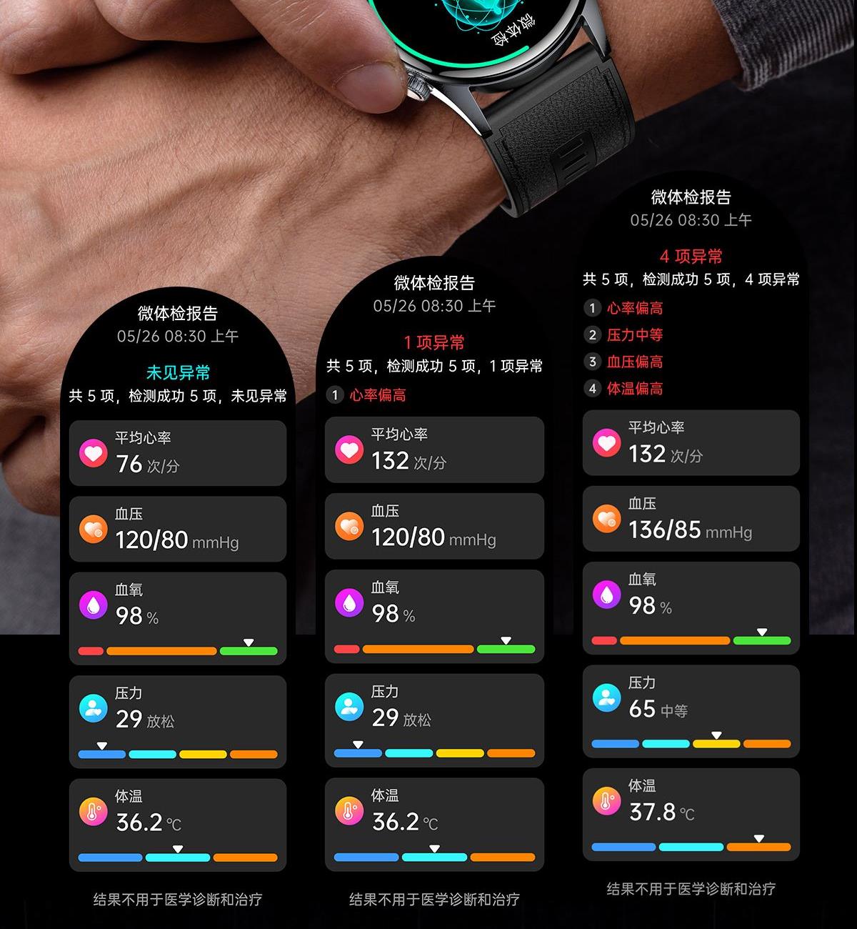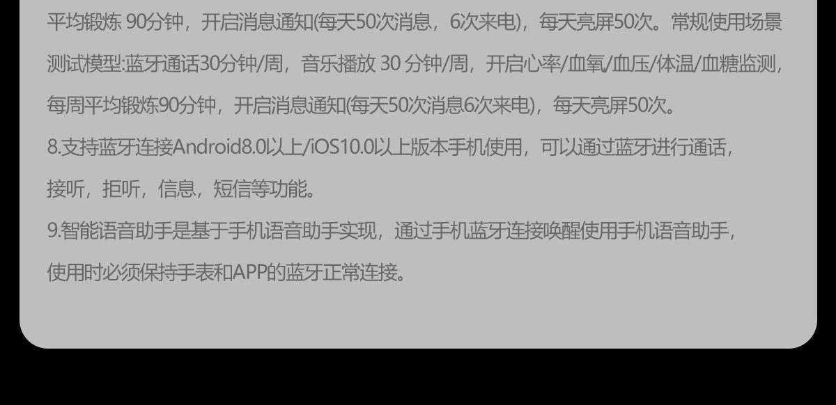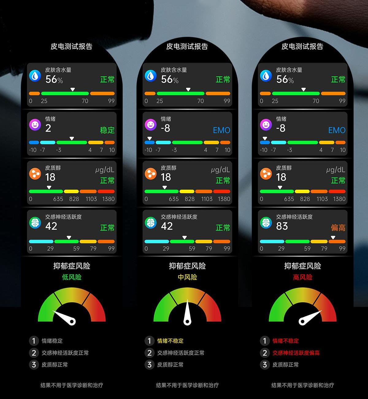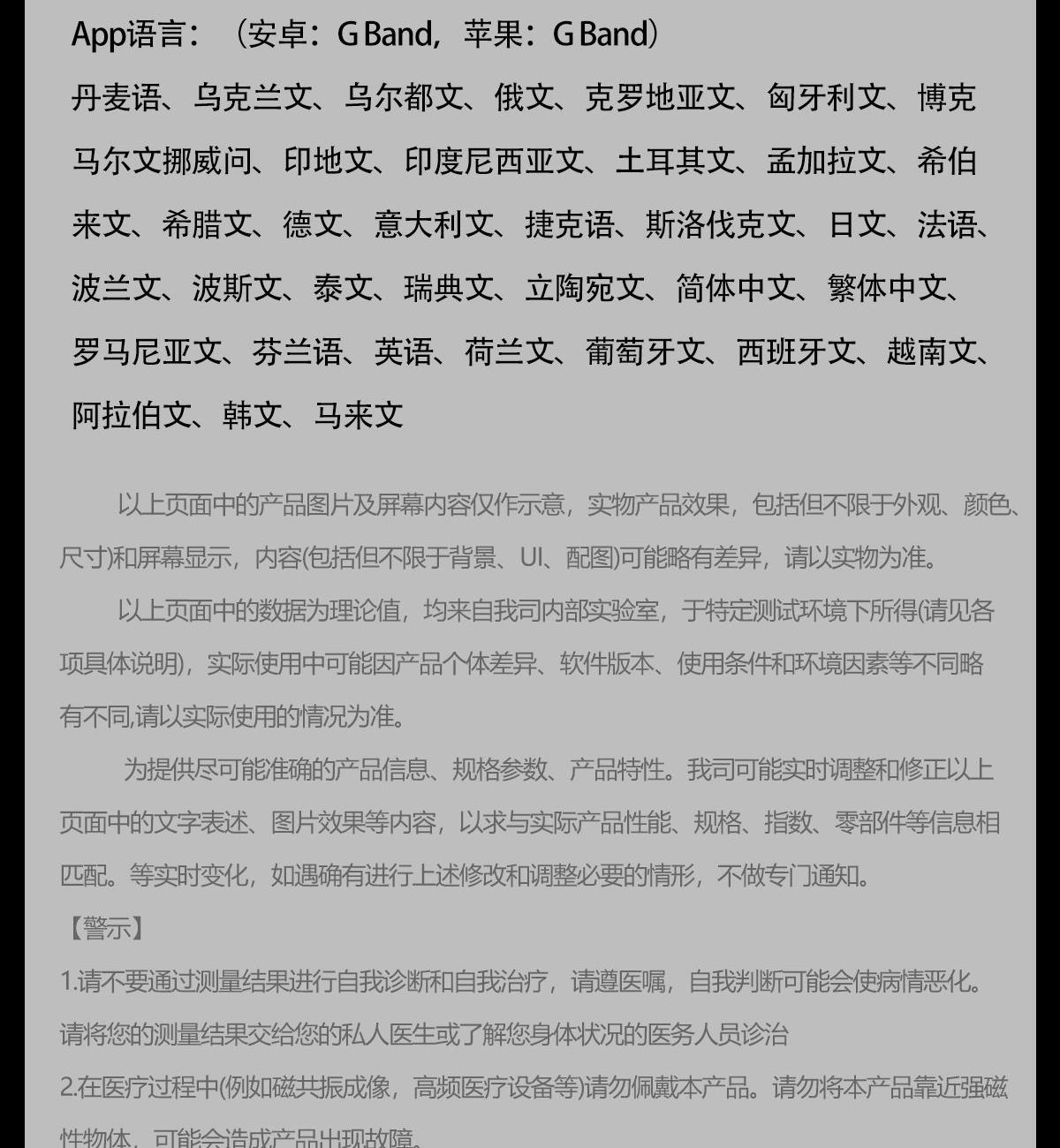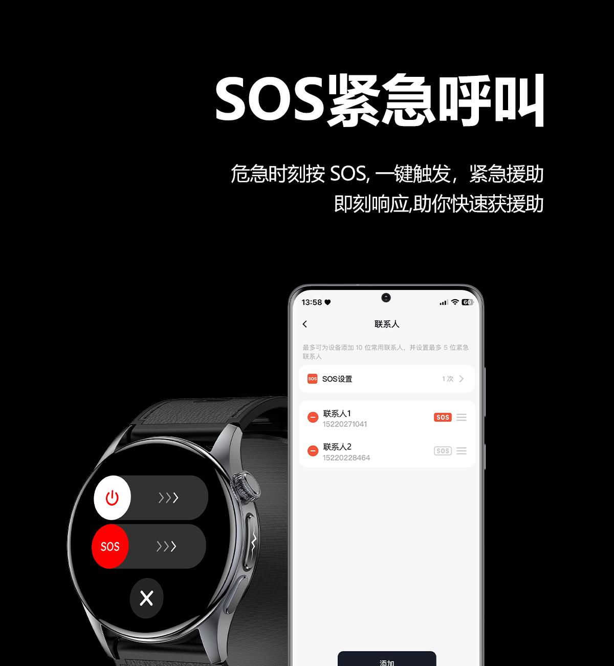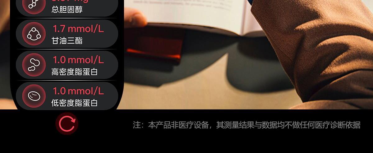 1. 采用日本村田高精密压电陶瓷气泵,血压测试稳定,一致性好,精量姿势判断、错误姿势、错误结果过滤和提醒。(密封墙体,防水性能也更好) 2. 采用Ti4950进口级芯片+纳米超导心电玻璃,采集心电图更 3. 4PD多通道动态心率血氧监测,采集心率血氧更 4. 一键微tijian功能,情绪检测,疲劳度检测 5. EDA皮电功能(测试情绪和交感神经活跃度、抑郁症风险等) 6. 科学睡眠(24小时睡眠监测) 其他:智能语音助手,蓝牙通话,支付宝离线支付,NFC门禁,SOS紧急呼叫功能,身体成分(体脂BMI)、无创xuetang评估,血液成分评估(尿酸血脂功能),梅脱功能,血氧监测,血压监测,呼吸训练,女性健康,心率监测,体温监测,手电筒,计步/卡路里/距离,多运动模式,闹钟,息屏显示功能,天气预报,游戏,音乐播放和控制。